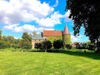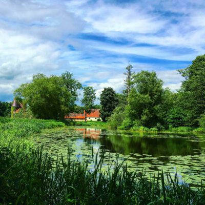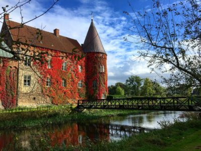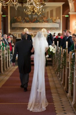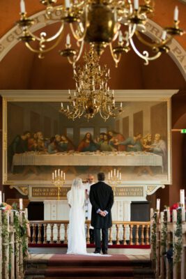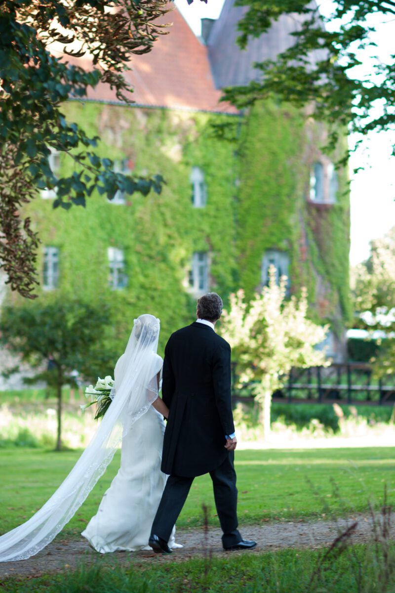 Kyrklig vigsel ett par minuters promend genom parken. Borgerlig vigsel slottsparken eller i slottets romantiska matsal