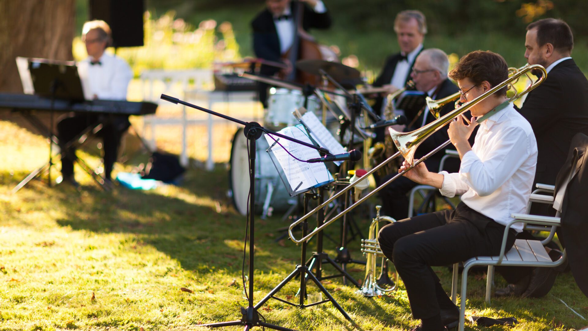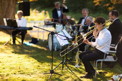 Brudskål i champagne eller mousserande vin kan serveras i parken, på borggården eller någon av Slottets salonger.